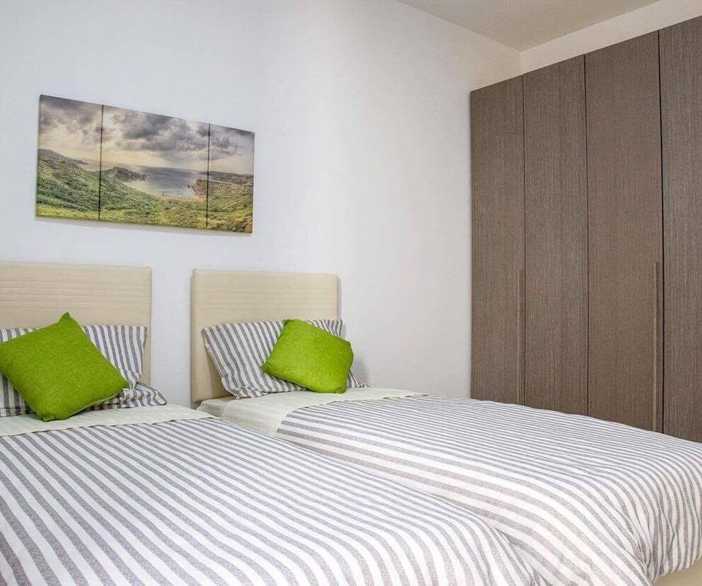 This apartment can sleep up to 6 people. It has its own entrance, separate from the other apartments in the block. It has 3 double bedrooms, one of which is en-suite. The other two bedrooms can have 2 single beds or a double bed according to your request. The apartment has a living area with […]
